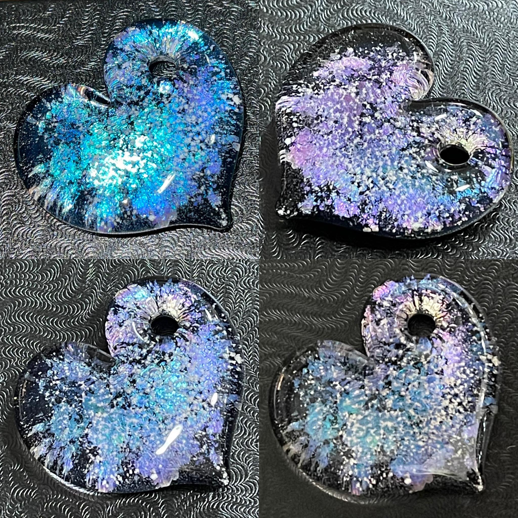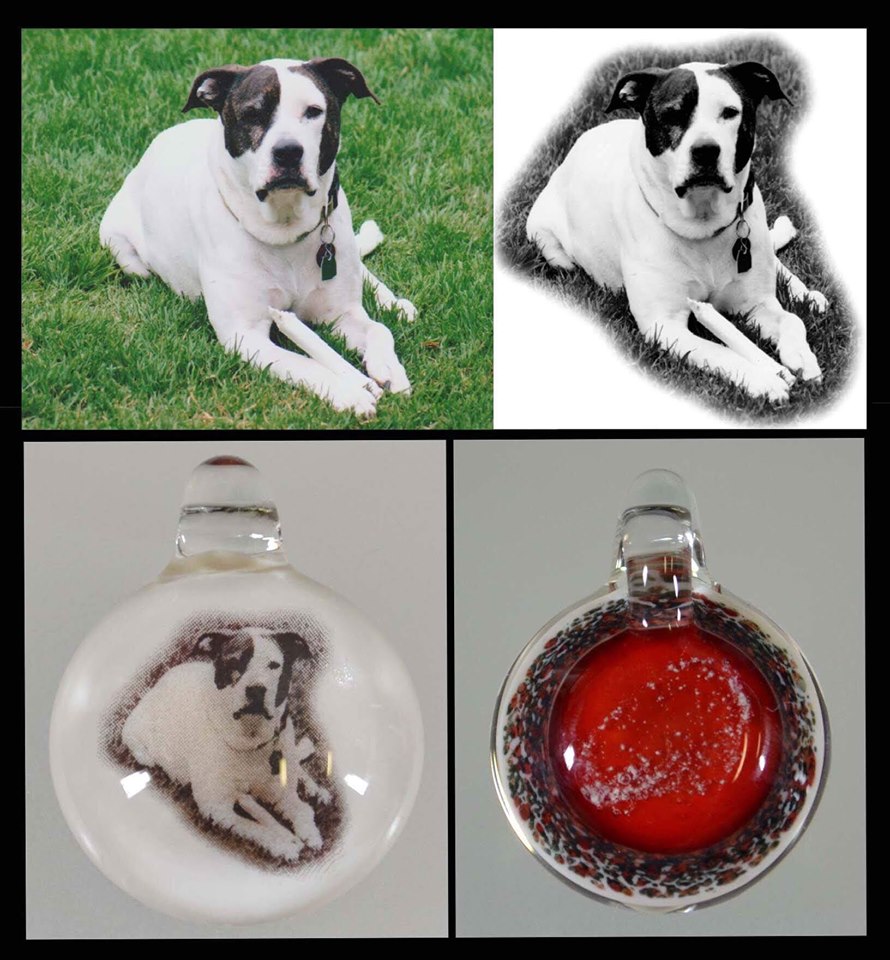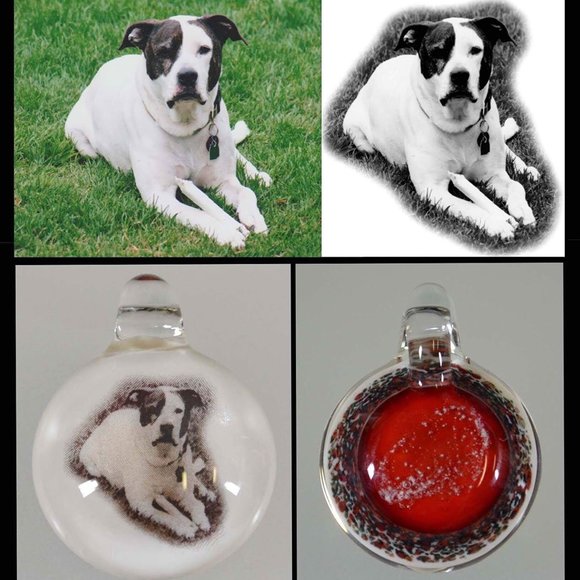 This is a gallery of a few of the custom memorial pieces I have created. These include cremains, otherwise known as "ashes" encased in the glass. These pieces only require a tiny, tiny amount of cremains, as a little goes a long way. I can make photo pendants with or without cremains. So whether your loved one or pet has not been cramated I can still make something unique for you. Of the many items I make, these are the most cherished and meaningful pieces to the recipients.